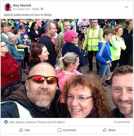You never know who you will bump into at parkrun but it was still a shock to bump into Mark Flatman (Ipswich juniors core team) when you are on tour in Derbyshire, but that is exactly what happened –